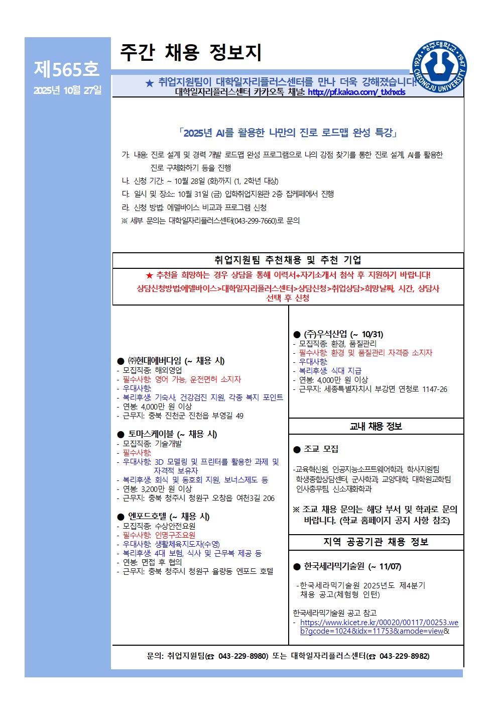 취업게시판 HOME 취업&진로 취업게시판 프린트 취업게시판 상세보기, 제목, 내용, 파일, 작성자등의 정보를 제공합니다. 제목 채용정보 소식지 제565호 사진 확대보기 채용정보 소식지 제565호입니다. 파일 채용정보 소식지 제565호.jpg 작성자 복재엽 (수학교육과) 목록 다음글 채용정보 소식지 제564호