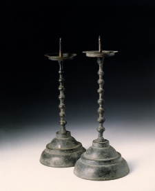 제사 때 초를 꽂는데 사용되었던 한 쌍의 촛대이다. 놋쇠로 만들었으며 밑판은 나팔모양으로 밑으로 가면서 벌어졌으며 중간쯤에 각이진 턱을 두어 전체적으로 3단을 형성하였고 맨 위에는 대받침이 있다. 대는 聯珠形으로 구슬모양의 마디를 일정 간격으로 장식하였다. 맨 위의 초꽂이는 길고 뾰족하며 그 밑에 분리되어 얹어놓은 접시모양의 촛농밭침이 구비되었다. 전면에 걸쳐 녹이 슬어 까만 색을 띠고 있다.