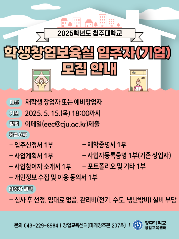 | 제목 | 2025학년도 학생창업보육실 입주자 모집 |