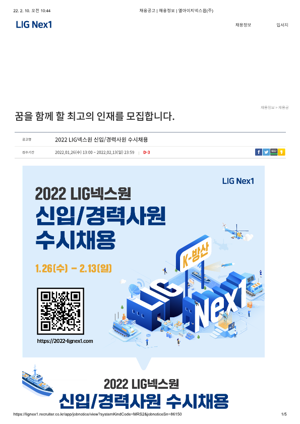 | 제목 | 2022 LIG넥스원 신입/경력사원 수시채용 |