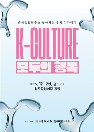 [ 청주대 RISE사업단, 지역 청소년 대상 ] ‘찾아가는 루키 아카데미’ 성료 청주대학교(총장 김윤배) RISE사업단 충북생활연구소는 교육부가 추진하는 지역혁신중심 대학지원체계(RISE) 사업의 일환으로, 지역 청소년들이 AI 신기술과 K-콘텐츠를 보다 쉽게 접하고 이해할 수 있도록 ‘찾아가는 루키 아카데미 ’K-Culture, 모두의 행복‘’을 개최했다고 29일 밝혔다.