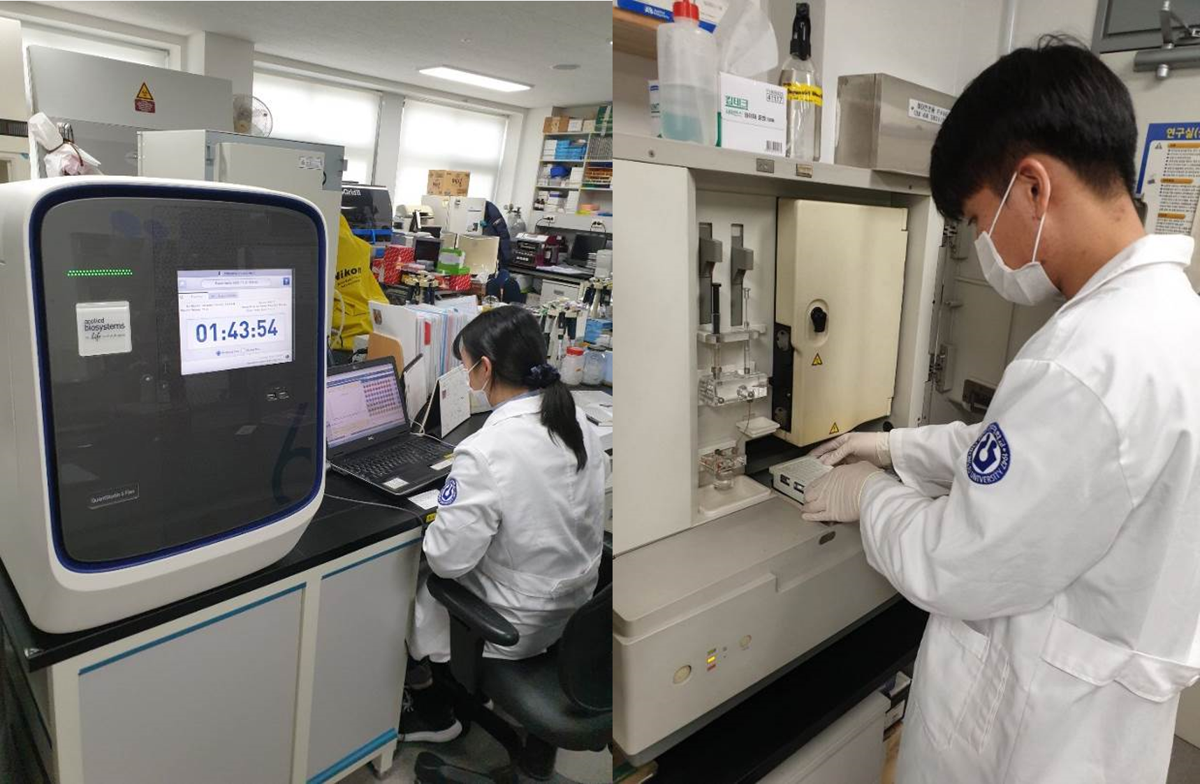사진설명 : 청주대 임상병리학과 졸업예정자 29명이 임상병리사 시험에 전원 합격했다. 사진은 임상병리학과 학생들이 실습하는 모습. |